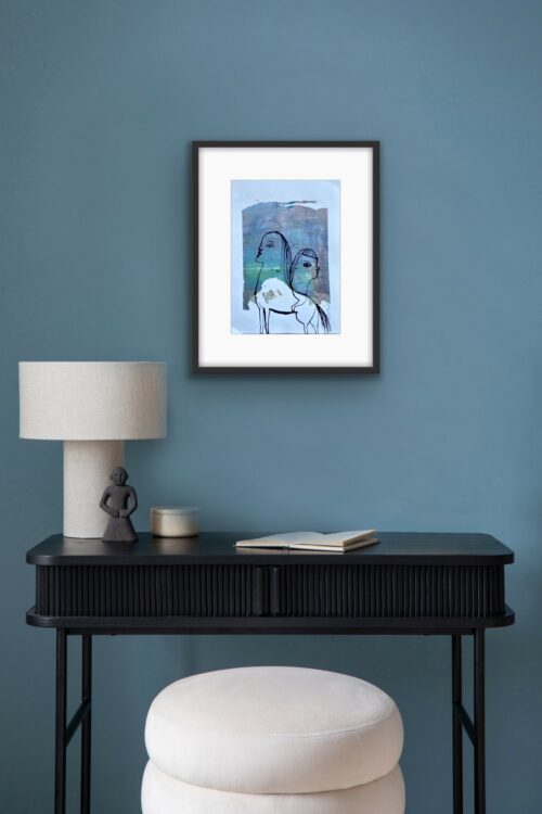 Material: acrylic and mixed media on paper, framed behind glass