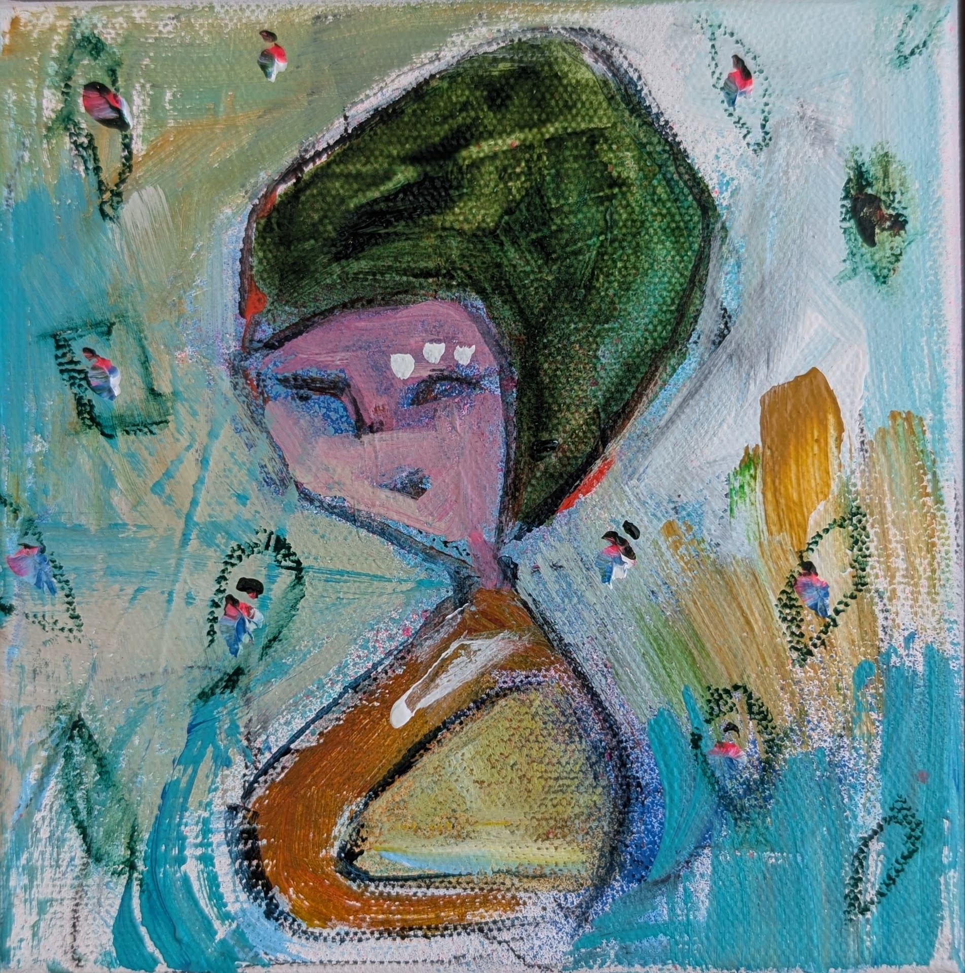 From a production and mediums perspective, all my works are layered and rich. At a distance they tell a story that, upon closer inspection, holds so much more to see. I experiment with surface texture and mediums to bring depth and make the immediate experience one of a ‘journey’. I also LOVE color and continue to use it to showcase and ‘underline’ mood. I don’t shy away from it and really use it to show that all life is colorful and rich and vibrant and ‘noticeable.’